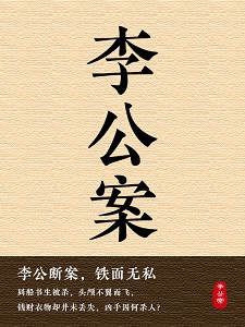 《李公案》是清代惜红居士创作的中篇小说,共三十四回。主要讲述了李公断案故事,情节新颖,加深了对案件侦察过程的叙述,打破了以往公案小说或严刑逼讯、或托梦示兆等熟套,有较强的逻辑推理色彩。李公,双讳持钧,表字镜轩,辽东人氏。生得方面大耳,虎背熊腰。能文能武,惯使两柄熟铜流星锤,所向无敌,人称“铜锤李”。实指清光绪年间有“北直廉吏第一”之称的李秉衡。