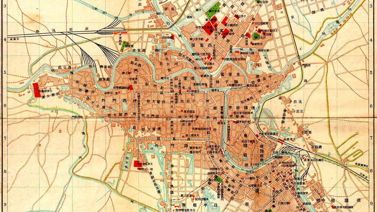 在1913年的天津地图中,居于正中的矩形地区为原天津老城 内容来自www.jirehuo.com